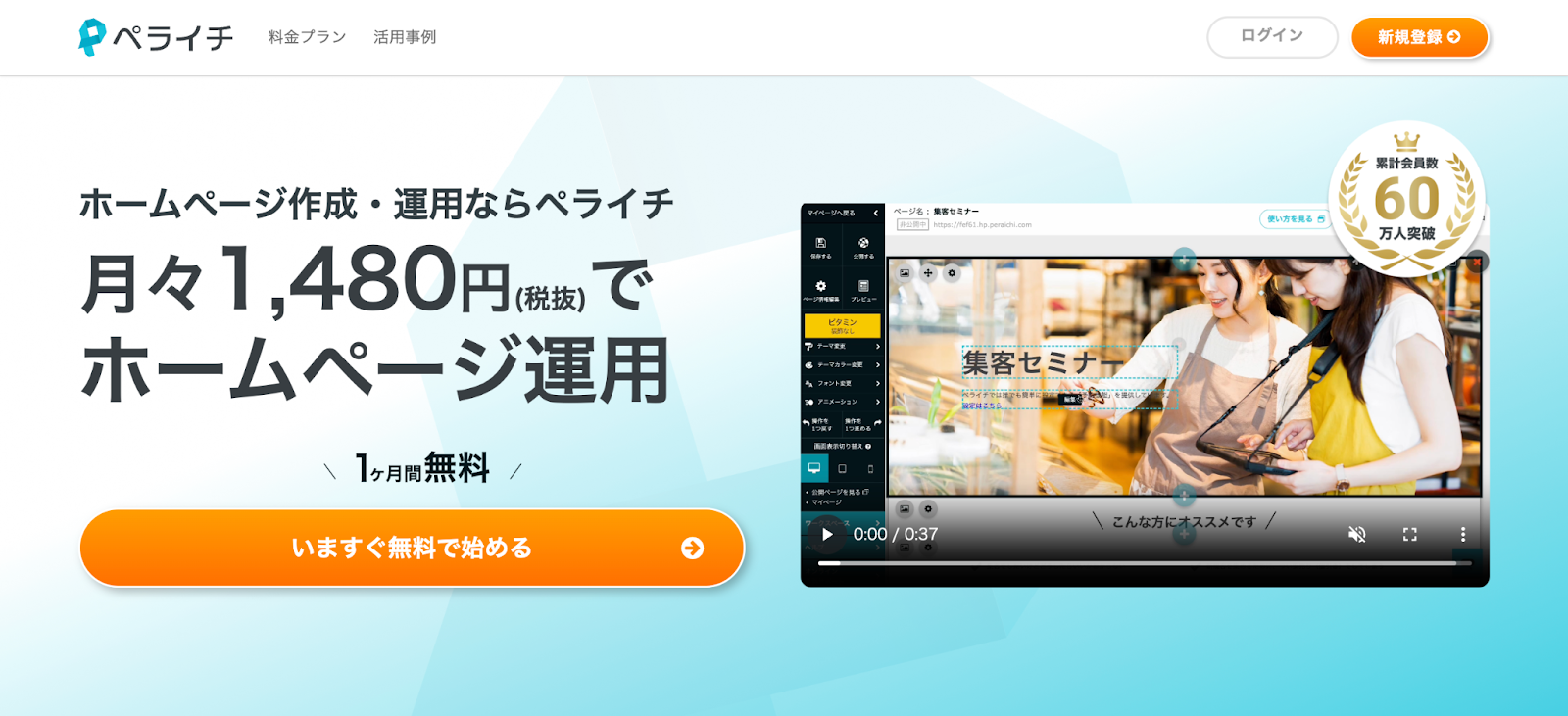 ペライチは専門知識がなくても、直感的に操作できるシンプルさが魅力のLP作成ツールです。