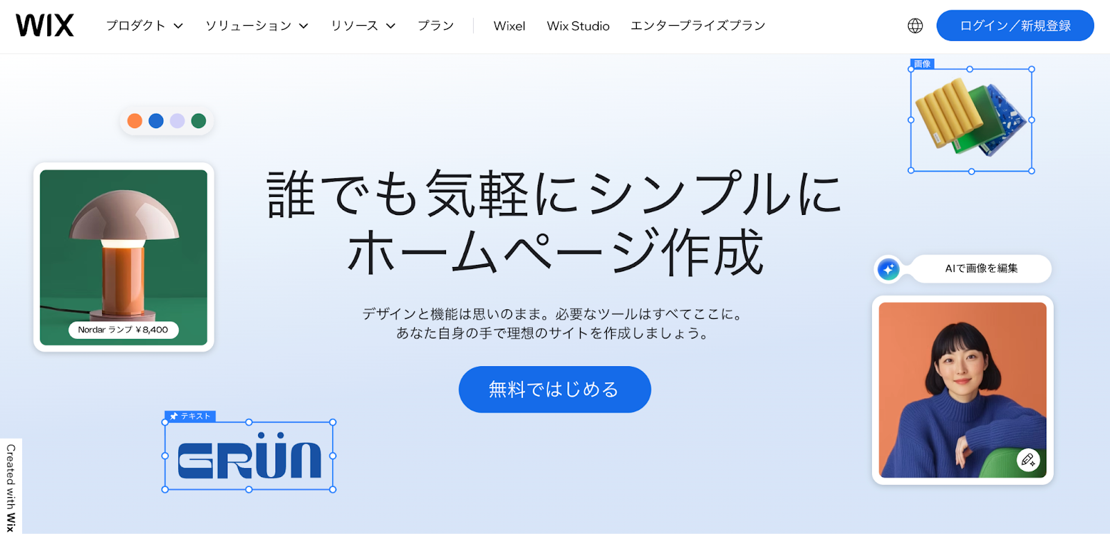 Wixは、ドラッグ&ドロップで自由にデザインを編集できる操作性が特徴のツールです。