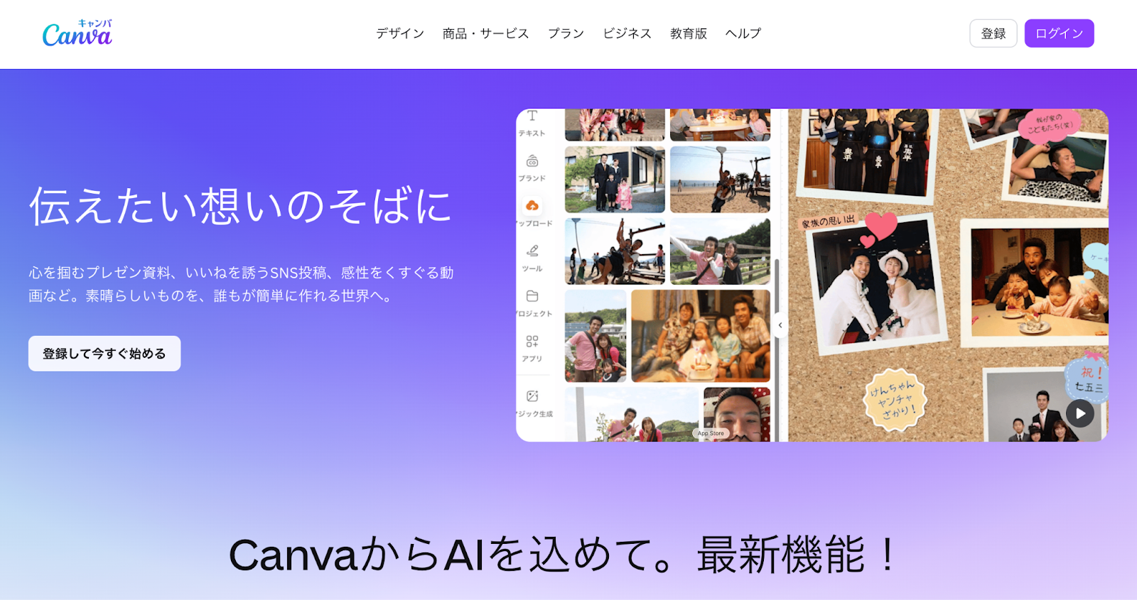 Canvaは、デザインテンプレートの豊富さを活かして、手軽に見栄えのいいLPを作れるツールです。